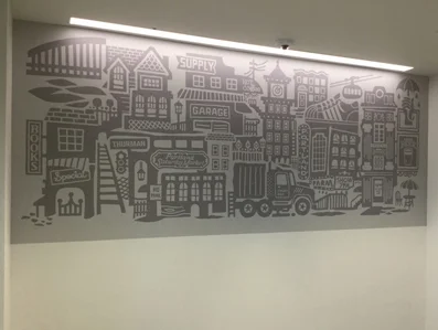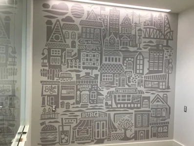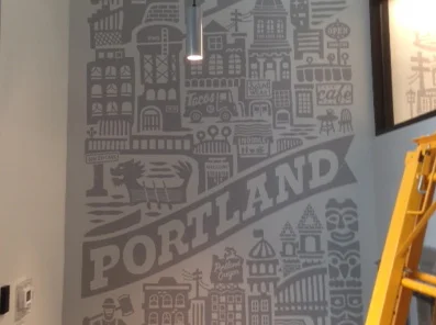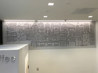 This mural lives in a new CCCU branch located in north downtown Portland, OR.